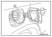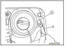 - Insert a suitable tool (A) as shown into bottom of fuel filler lock