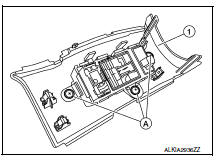 - Remove the instrument lower panel LH. Refer to IP-21, "Removal and