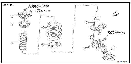 Do not damage the piston rod when removing components from the front coil spring and strut.