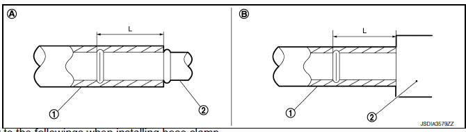 | Water hose (1) | Installation side tube (2) | Direction of paint mark | Hose insertion depth (L) |