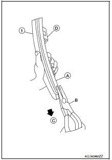 - Remove the wiper blade. Refer to WW-58, "WIPER BLADE : Removal and