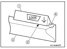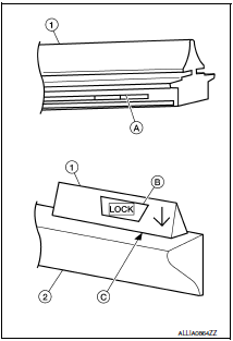 Make sure the LOCK mark (B) on the wiper blade refill (1) is